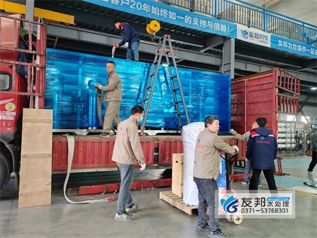 近日,郑州友邦为新密洗涤行业量身定制的反渗透纯水设备已顺利装车发货。